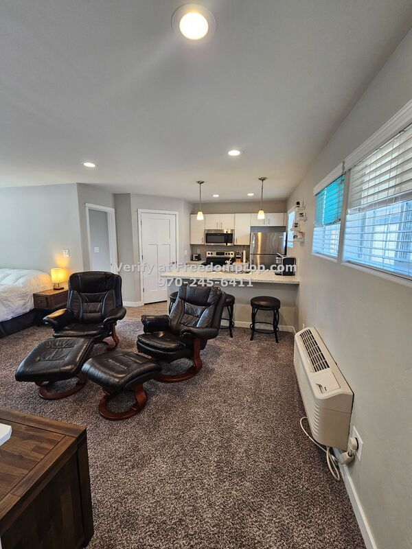 Available Now (subject to change) This beautiful FURNISHED studio apartment was recently built in downtown Grand Junction. It is an open concept living room and kitchen/dining. It has a full kitchen including range, refrigerator, dishwasher and microwave. There is also a washer and dryer. All utilities are included.